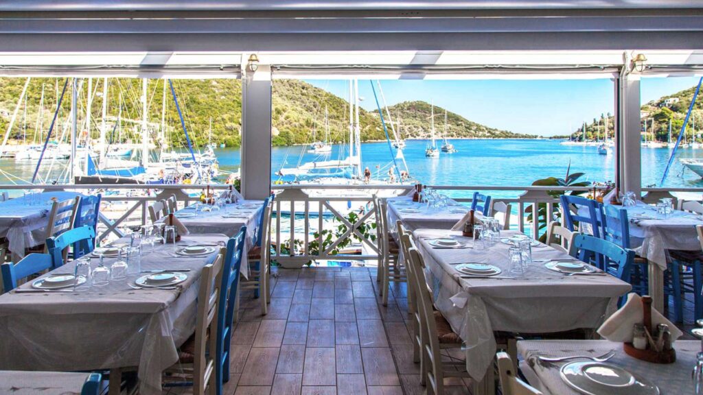 Enjoy modern Greek cuisine and incredible blue views. Seaside Restaurant is set by the water’s edge in Geni